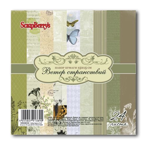 Набор бумаги Scrapberrys 15*15 см "ВЕТЕР СТРАНСТВИЙ"