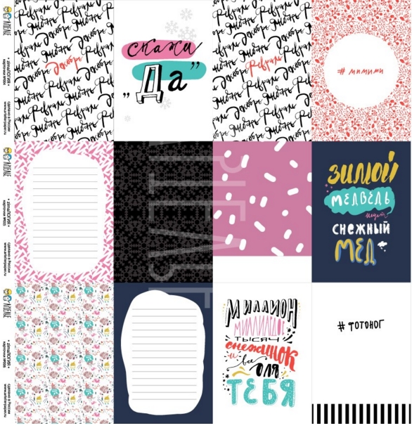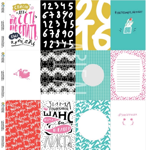 Листы формата 28 х 10 см с карточками (4 карточки формата 7 х 10 см на листе, всего 48 картчоек, 12 листов). плотность 200г/м2.