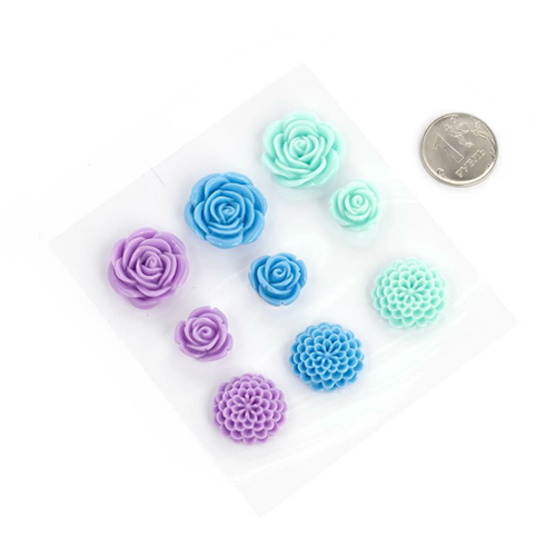 Набор объёмных пластиковых цветов "Сиреневый, голубой, бирюзовый"