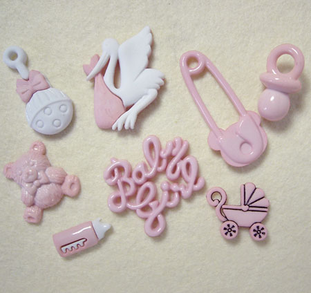 В наборе 8 пуговичек на ножках разной формы. Размер самой большой пуговицы приблизительно 3 х 2,5 см.