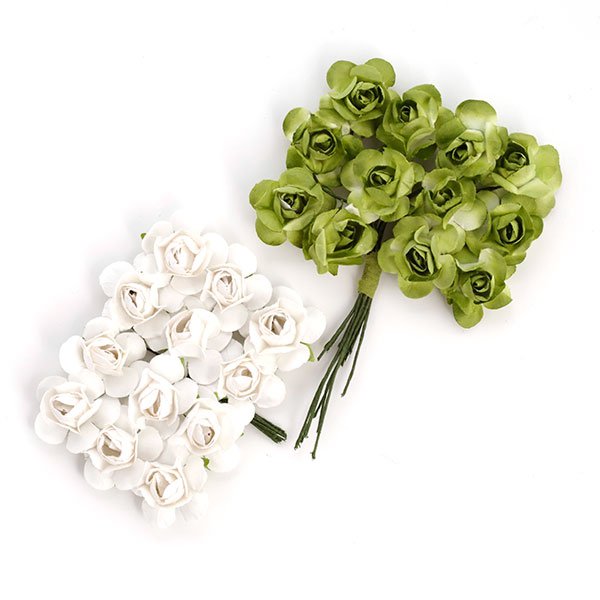 Набор роз 2 см Magic , цвет белый и светло-зелёный