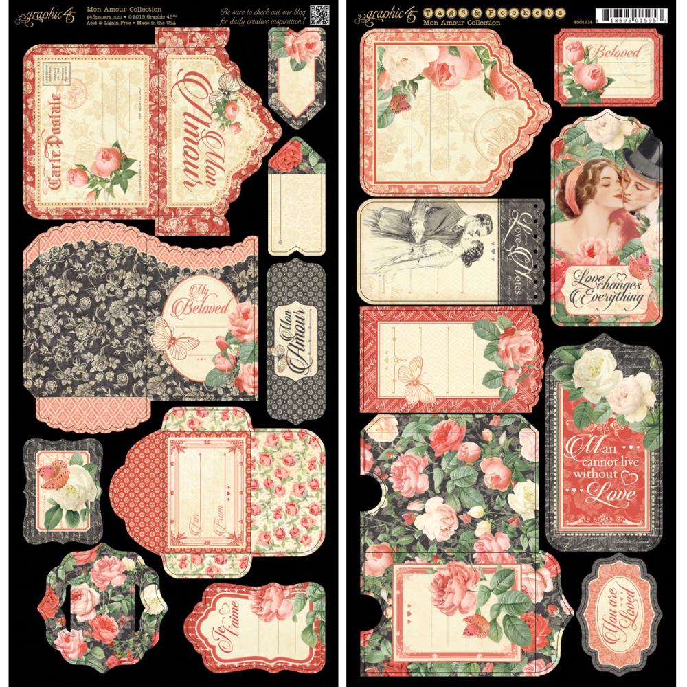 Набор тегов и конвертиков Graphic 45 "Mon Amour"