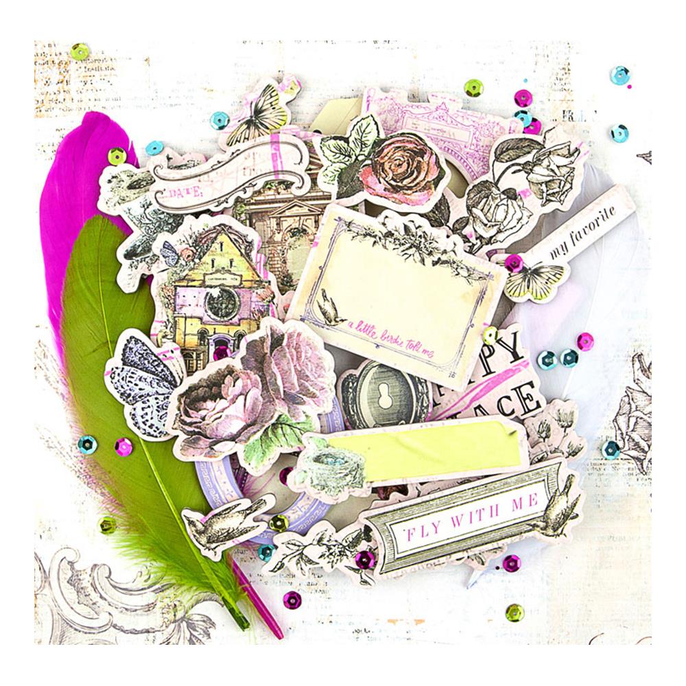 38 элементов: наклейки из чтпборда, перья, пайетки. Упаковка 22,5 х 20 см
