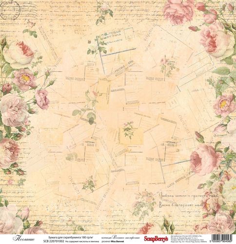 Односторонняя бумага Scrapberrys "Послание " (SB120)