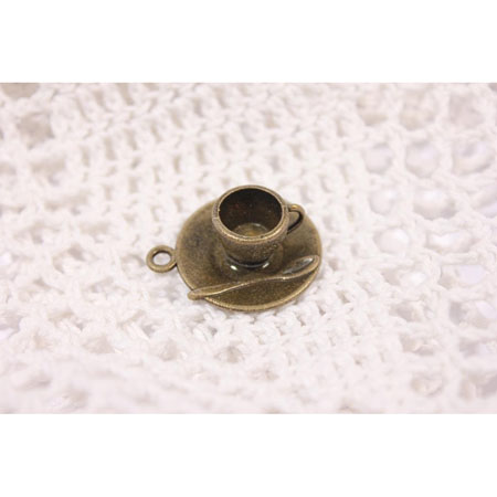 Подвеска металлическая "Чашка капучино с блюдцем". Цвет античный бронзовый. (188)