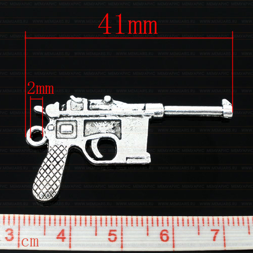 Подвеска металлическая "Пистолет". Цвет серебряный (117)