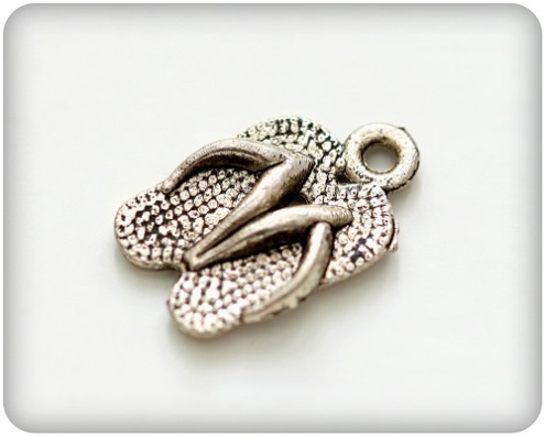 Подвеска металлическая "Пляжные тапочки". Цвет серебряный