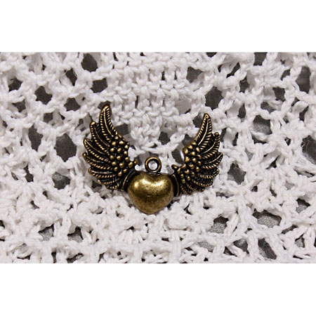Подвеска металлическая "Сердце с крыльями". Цвет античный бронзовый.