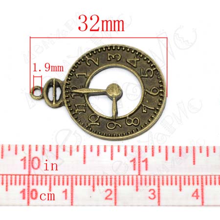 Подвеска металлическая "Циферблат 32 х 24" Античный бронзовый