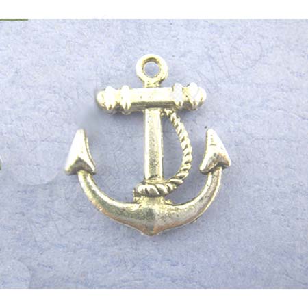 Подвеска металлическая "Якорь с канатом". Цвет серебряный. (130)