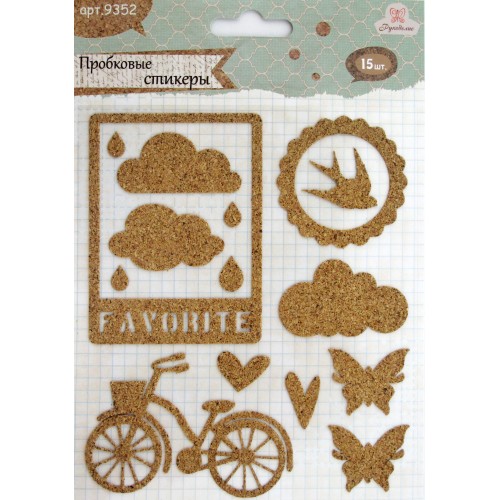 Наклейки из натуральной пробки. 15 элементов в наборе. Размер велосипеда 7,6 х 5,5 см