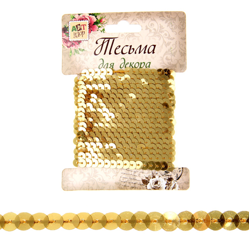 Тесьма из пайеток АртУзор, цвет золотой, упаковка 2,5 м