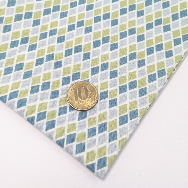 Ткань лоскутная 50 х 55 см "4507", салатово-голубые ромбики