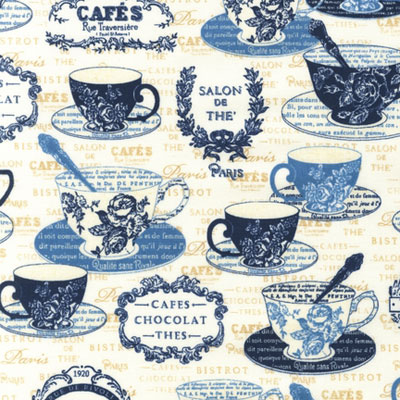 Ткань лоскутная 50 х 55 см "Parisian cafe", синие чашки