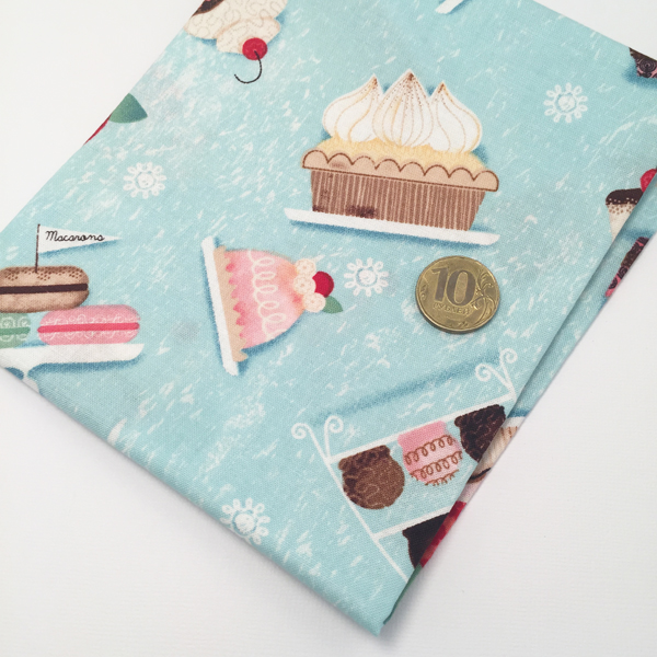 Ткань лоскутная 50 х 55 см "Sugary sweet", пироженки на мятном