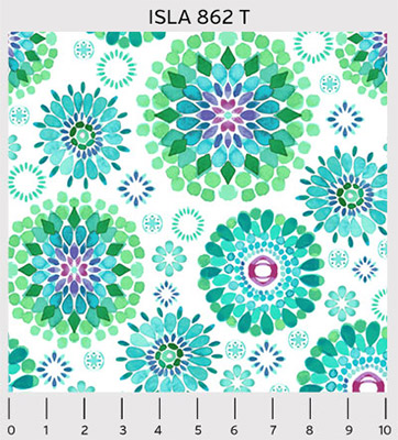 Ткань лоскутная 50 х 55см "ISLAND BREEZE",бирюзовые цветочные орнаменты