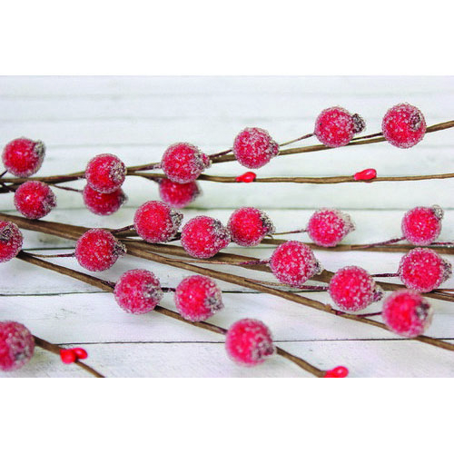Веточка Scrapberrys с красными ягодками в обсыпке, 42см