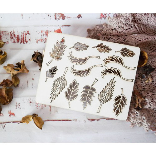 Размер листа с вырубкой около 11,5х15см. В наборе 14 листочков от 3 до 6 см в длину.