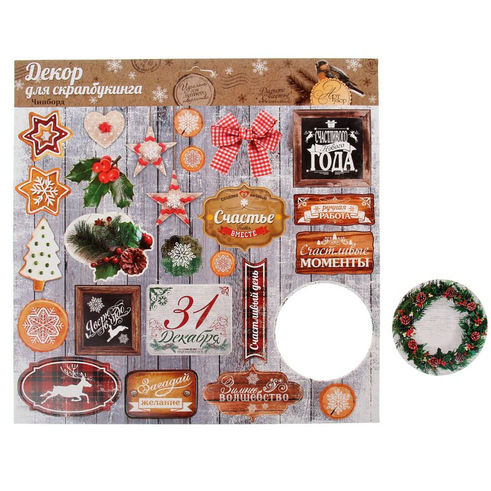 Набор картонных декоративных фигурок на листе 29,5 х 29,5 см. Элементы вырублены. Вырезать не нужно. Достаточно просто выдавить их из общего листа руками, немного нажав.Удобны в использовании. Предназначены для декора любых скрапработ.