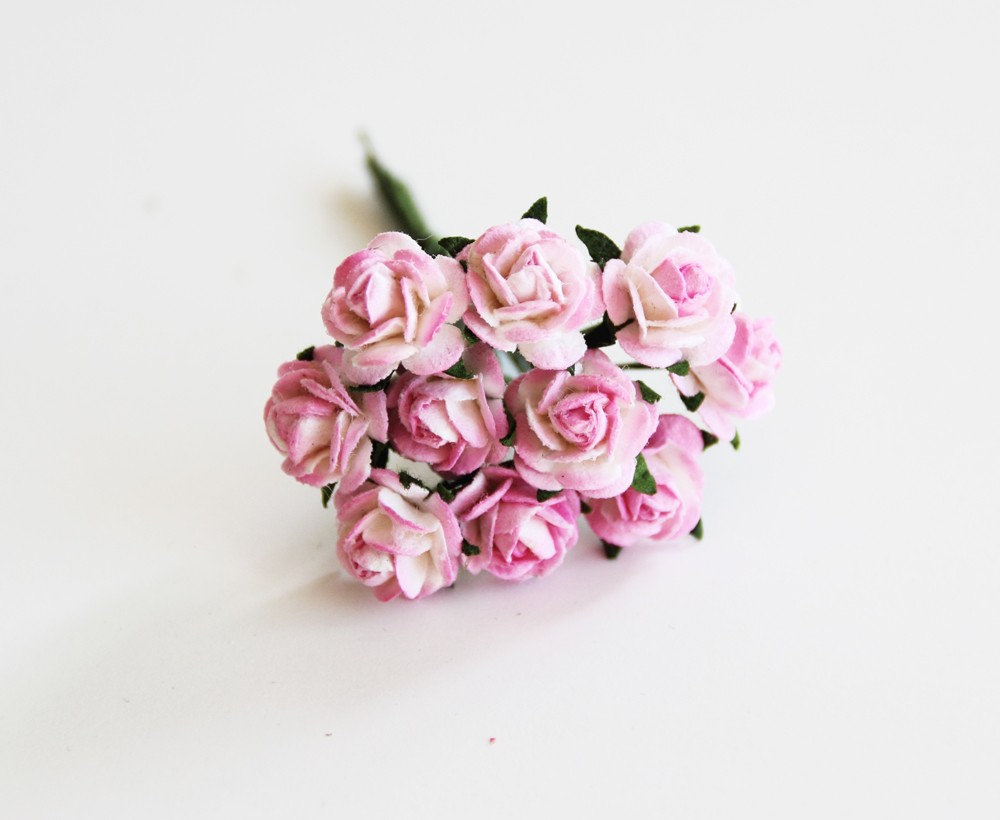 Букет микро-розочек открытых. Цвет бело-розовый.