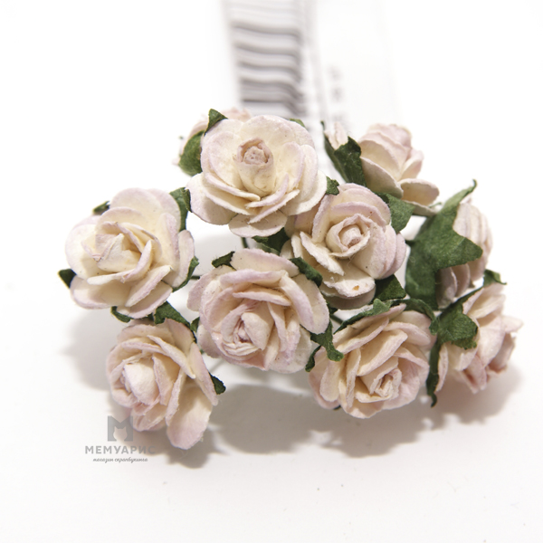 Букет мини-розочек открытых. Цвет белый с бледно-сиреневым