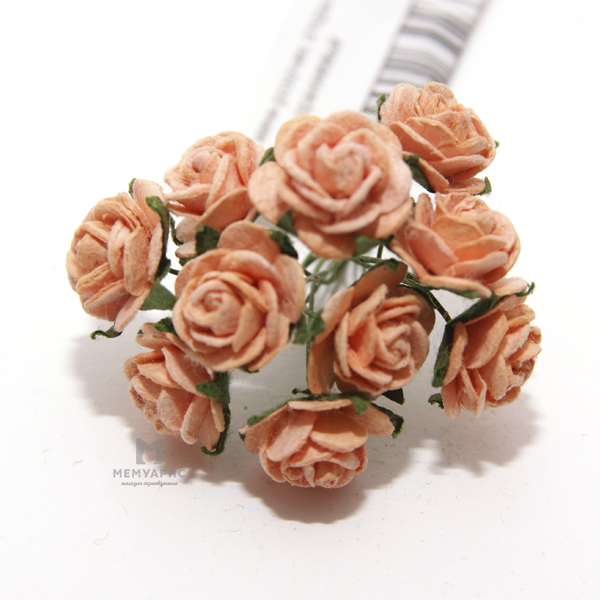 Букет мини-розочек 1,5 см открытых. Цвет персиково-оранжевый