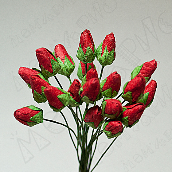 В букете 20 розочек. Размер бутона 8 мм. Длина букета со стеблем 11 см. Можно использовать как в букете, так и поштучно.