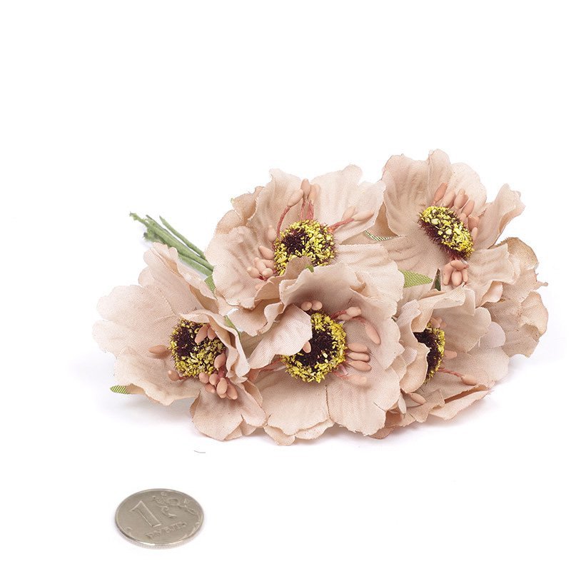 Размер цветка 4-5 см, длина со стеблем околло 11 см. 6 штук в букете