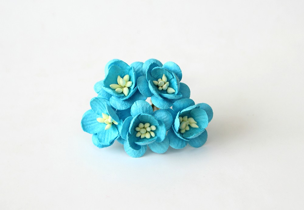 Букет "Цветы вишни 2,5 см". Цвет яркий бирюзовый