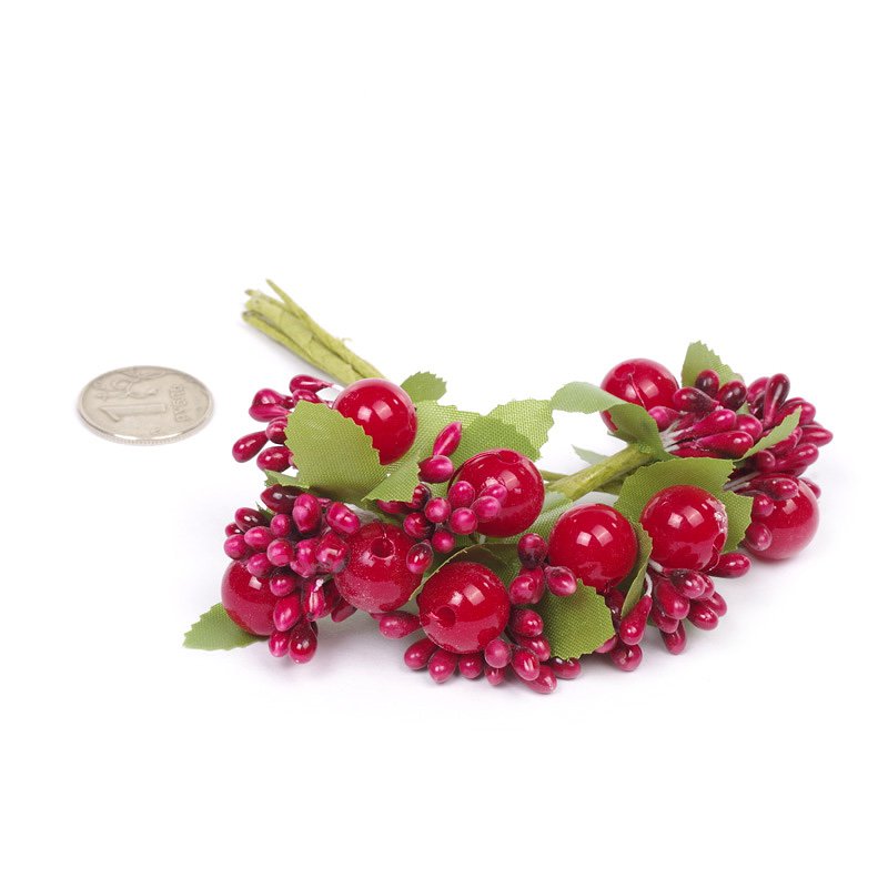 Букет тычинок с ягодками и листиками, цвет красный