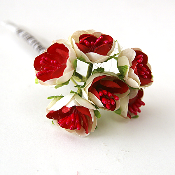 Букетик тканевых цветочков 6 штук с тычинками, цвет кремово-красный