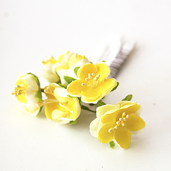 Букетик тканевых цветочков 6 штук с тычинками, цвет кремово-жёлтый