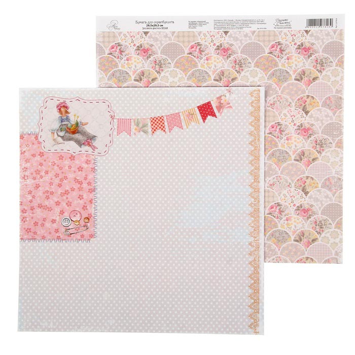 Бумага для скрапбукинга двусторонняя. Размер 29,5 х 29,5 см. Плотность 180 г\м2. Внимание! Реальная длина одной из 2-х сторон 28,5 см за счёт отрезной полосы со штрихкодом.