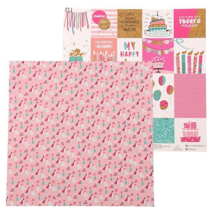 Бумага для скрапбукинга двусторонняя. Размер 30,5 х 30,5 см. Плотность 180 г\м2. Внимание! Реальная длина одной из 2-х сторон 28,5 см за счёт отрезной полосы со штрихкодом.