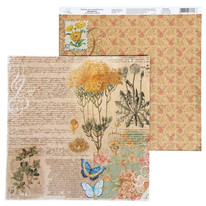 Бумага для скрапбукинга АртУзор "La Botanique" Текст(ART125),