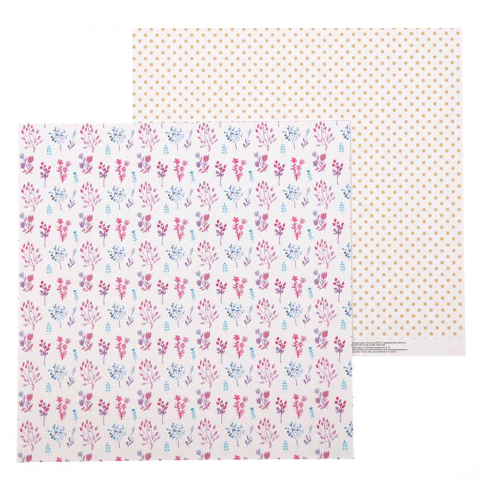 Бумага для скрапбукинга двусторонняя. Размер 30,5 х 30,5 см. Плотность 180 г\м2. Внимание! Реальная длина одной из 2-х сторон 28,5 см за счёт отрезной полосы со штрихкодом.