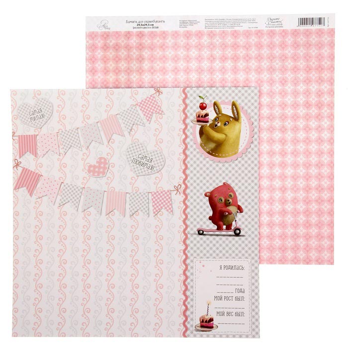 Бумага для скрапбукинга АртУзор "Наша крошка" Я родилась! (ART107),