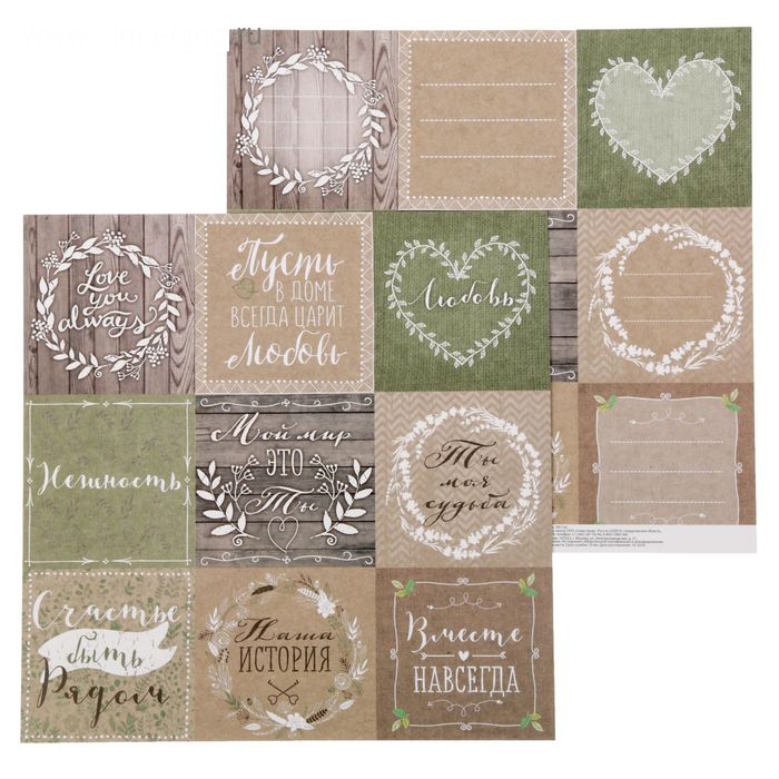 Бумага для скрапбукинга АртУзор «RusticWedding» Каллиграфия (ART288)