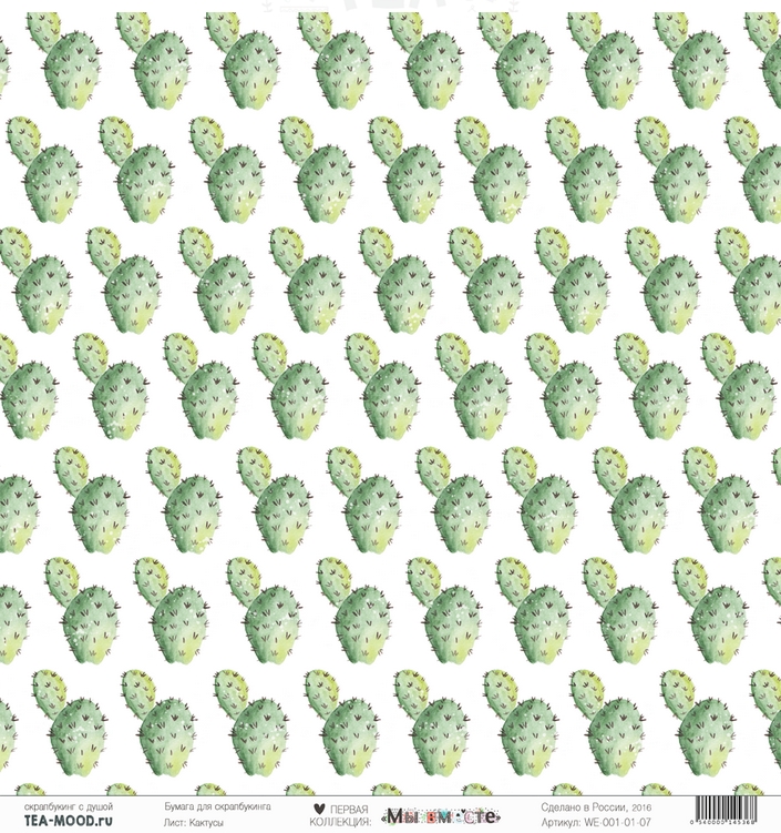 Бумага для скрапбукинга Tea-Mood "Мы вместе", Кактусы (TEA6)