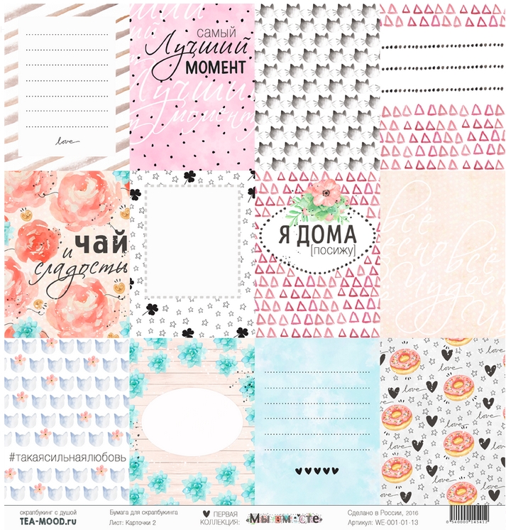 Бумага для скрапбукинга Tea-Mood "Мы вместе", Карточки 2 (TEA11)
