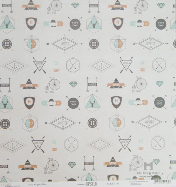 Бумага Karaliki 30 х 30 см "Hipster", значки (KRL62)