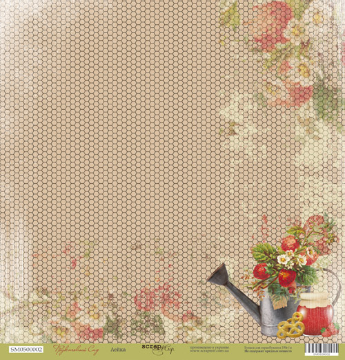 Бумага односторонняя. Коллекция "Фруктовый сад". Мотив "Лейка" (SM26)