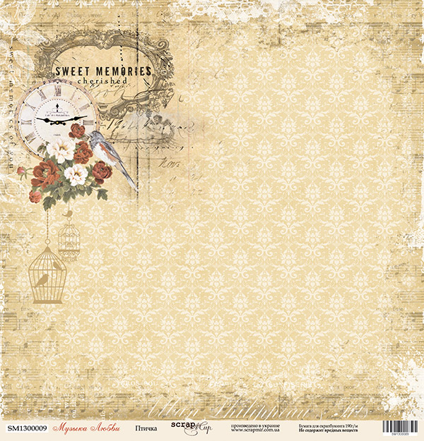 Бумага односторонняя. Коллекция "Музыка любви". Мотив "Птички" (SM81)