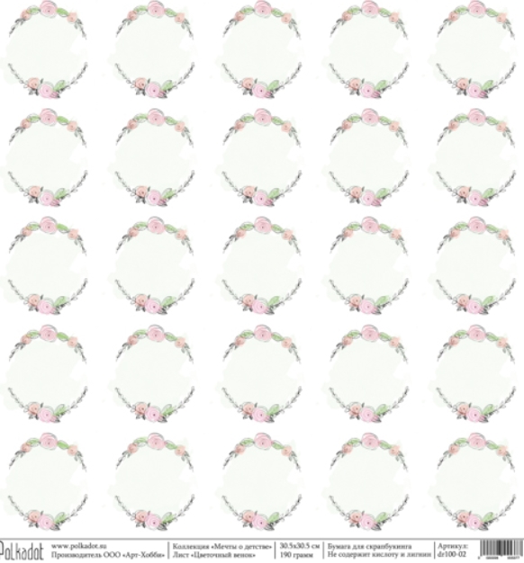 Бумага Polkadot. Коллекция "Мечты о детстве" Цветочный венок (PKD-61)