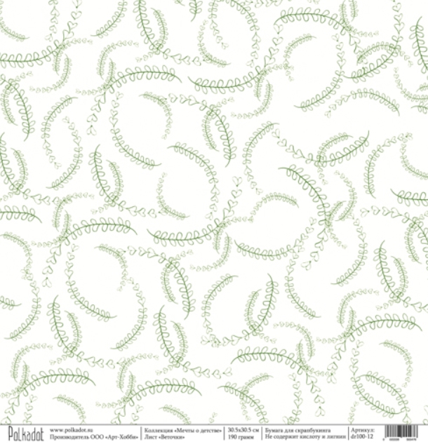 Бумага Polkadot. Коллекция "Мечты о детстве" Веточки (PKD-50)