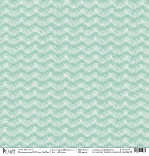 Бумага Polkadot. Коллекция "Мятное лето" Шеврон (PKD-87)
