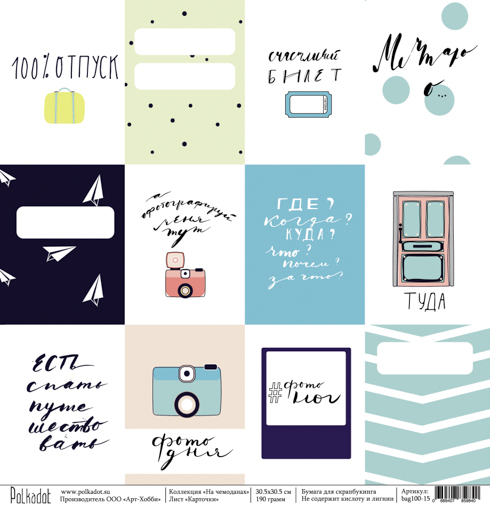 Бумага Polkadot. Коллекция " На чемоданах" Карточки (PKD-190)