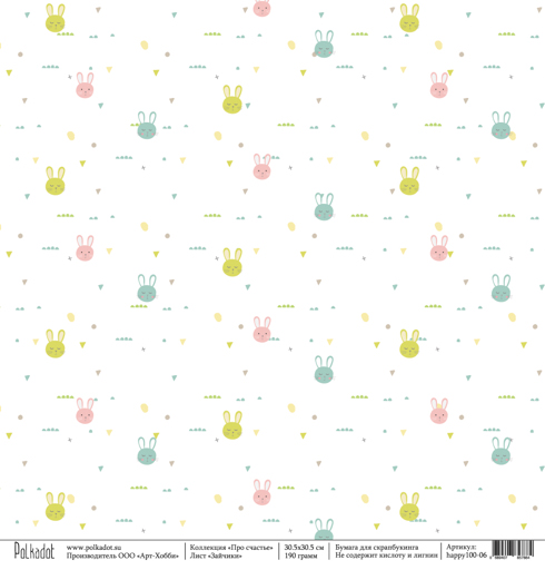 Бумага Polkadot. Коллекция "Про счастье "Зайчики (PKD-125)