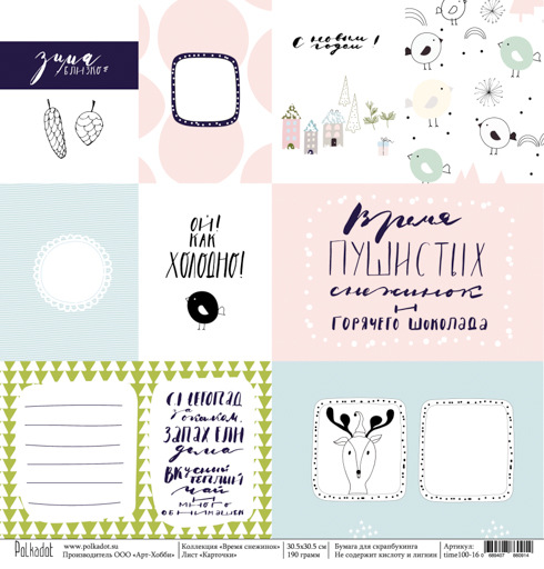Бумага Polkadot. Коллекция "Время снежинок". Карточки (PKD-215-12)