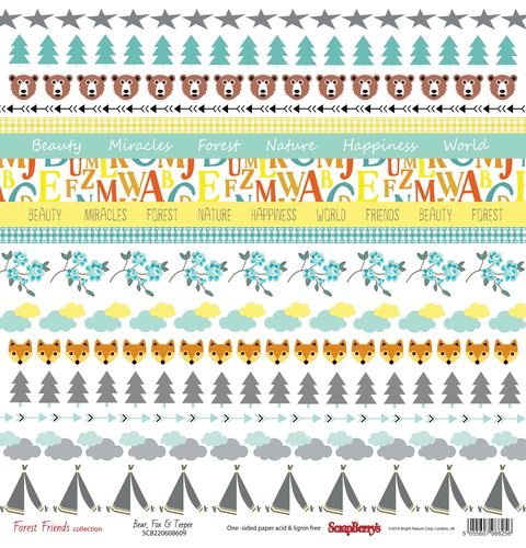 Бумага Scrapberrys "Лес Чудес "Медведь, лисица и вигвам(SB640)